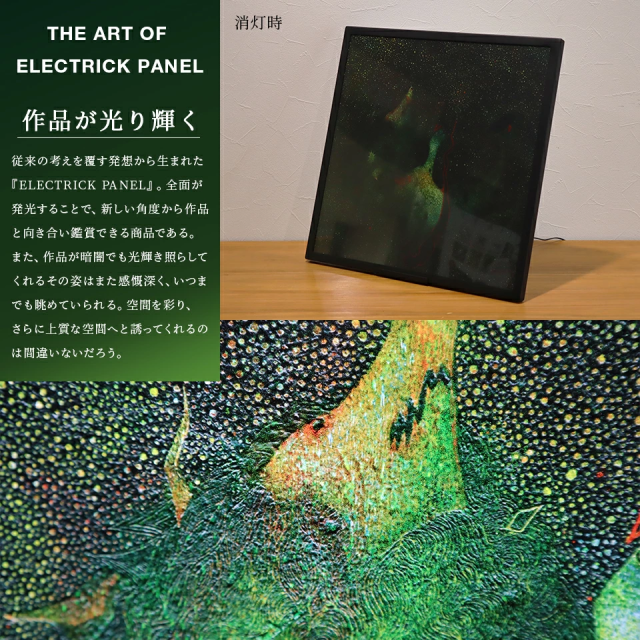 | 注意事項 | 下記をご理解・ご了承の上、購入して下さい。 ●こちらの商品は受注生産品の為、ご注文確定から3~4週間程で発送致します。お時間頂く商品の為、ご了承の上ご購入下さい。 ●本商品は受注製作商品です。製作後のキャンセル、返品はお受けできませんのでご了承ください。 ●カラーの見え方につきましては、お客様のモニターなどの設定により、違って見える場合もございます。予めご了承くださいませ。 ●当商品のご使用については、ご使用者の管理の元、責任をもってお使いください。 ●当商品の使用目的以外のご使用はお控えください。 ●当商品の上にものを置かないでください ●屋内仕様です。屋外での使用はお控えください。 ●透明面板の間に水分が入り込むと作品の見映えにも影響します。 長期的にもご使用頂けるよう定期的に布などで拭き取ってください。 ●長くお使い頂く為に、点灯してから1日20時間以内に必ず消灯するようにしてください。 ●壁面に取り付けする際の金具、器具はお客様ご自身でご用意ください。 ●付属しているACアダプタ以外でのご使用はお控えください。故障の原因になります。 ●ACアダプタをコンセントにつなぐ際はジョイント部分を繋いでからコンセントに差し込んでください。 ●点灯時、商品に布や紙なので覆ったり、被せたりしないでください。火災の原因になります。 ●当商品の利用による、怪我・破損・汚損・紛失等については補償致し兼ねます。予めご了承ください。 ●長時間使用(24時間以上の連続使用)はお控えください。 ●直射日光が当たる場所はお控えください。色あせる可能性がございます。 ●保証期間は購入後、1年間です。(点灯しなくなった等の場合は購入店舗にご連絡ください。対象:当商品のみ) |