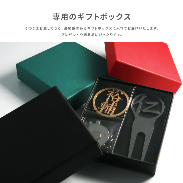 MARCAM GIFT SET No.01031 / 漢字ゴルフマーカー1個 & 文字入れ対応グリーンフォーク ギフトセット