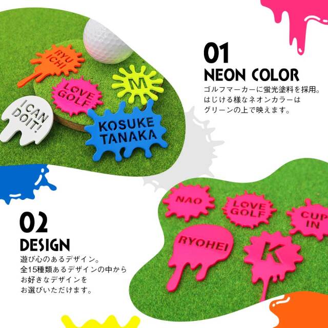 MARCAM Splash letter / はじけるポップな名入れゴルフマーカー 蛍光カラー