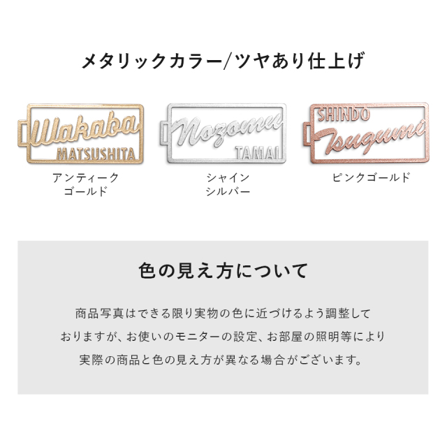 名入れする文字がロゴデザインのように見えるおしゃれな仕上がり。メインの書体は2種類。カラーは豊富な18色から選択できます。商品仕様