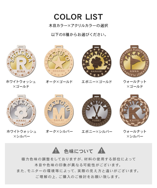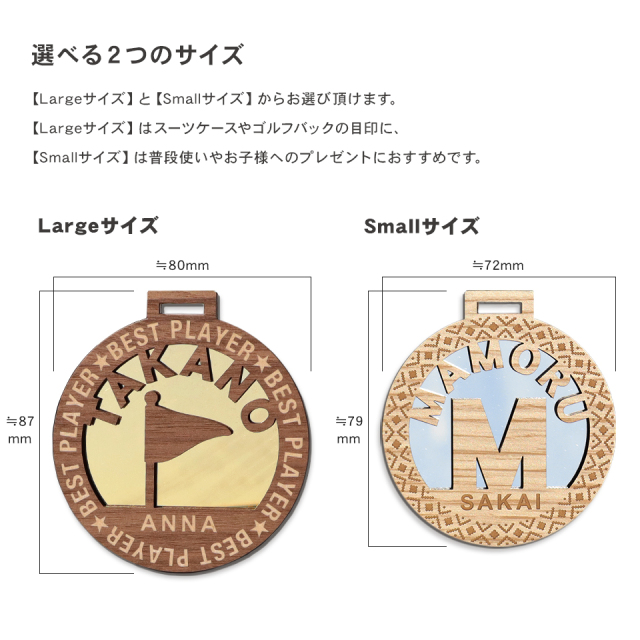 ぬくもりを感じる木目とミラーのような輝きのアクリルを組み合わせた、なんだか落ち着くネームタグ。中央のデザイン、カラーとフレームを組み合わせ、オリジナルのネームタグを作ることが出来ます。商品仕様