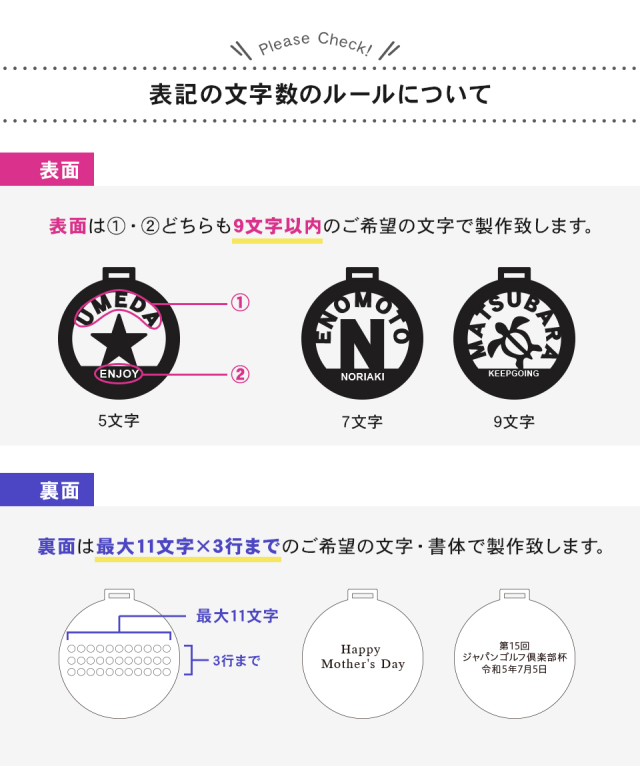 - 著作物やロゴ等を真似たデザイン、著作権や肖像権などの侵害になるデザインでの製作はお受けできません。