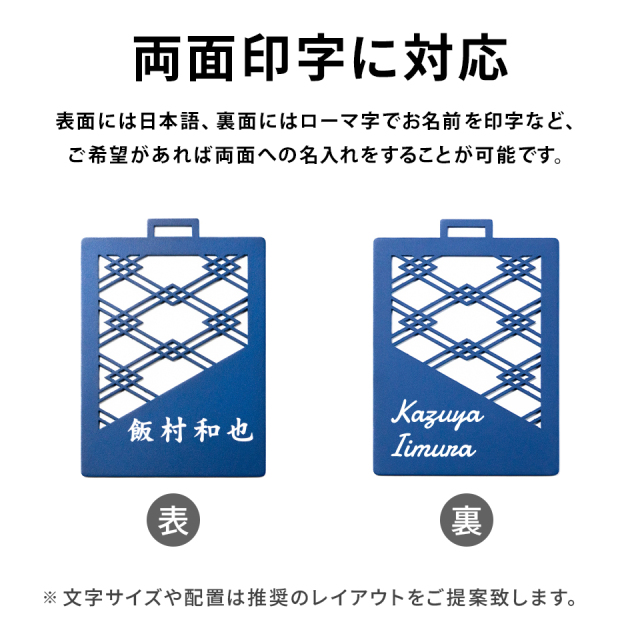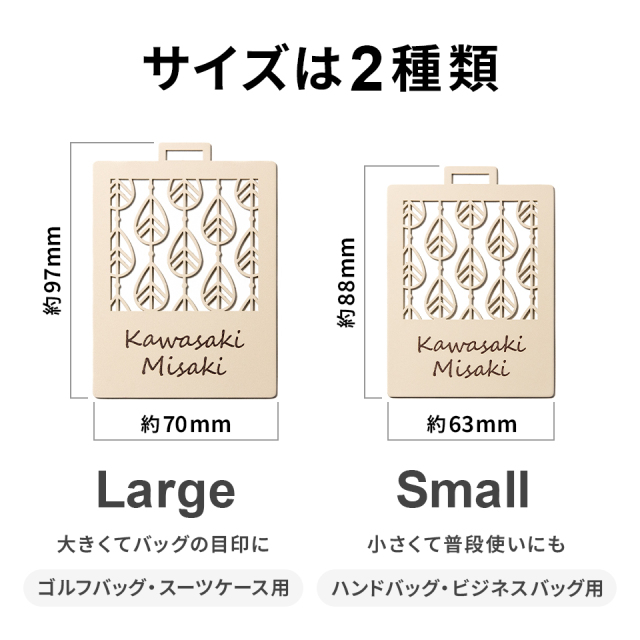 | ネームタグ サイズ | Large:約 横幅70mm×高さ97mm Small:約 横幅63mm×高さ88mm |